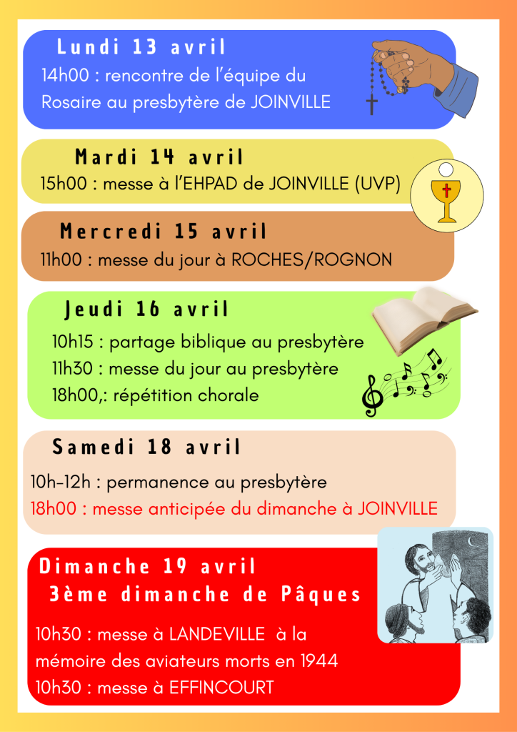 Semaine du 13 au 19 avril 2026… 12 avril 2026 / Madeleine STOURM / Divers Au revoir Mgr Joseph de METZ-NOBLAT Semaine du 13 au 19 avril 2026… Lire la suite »
