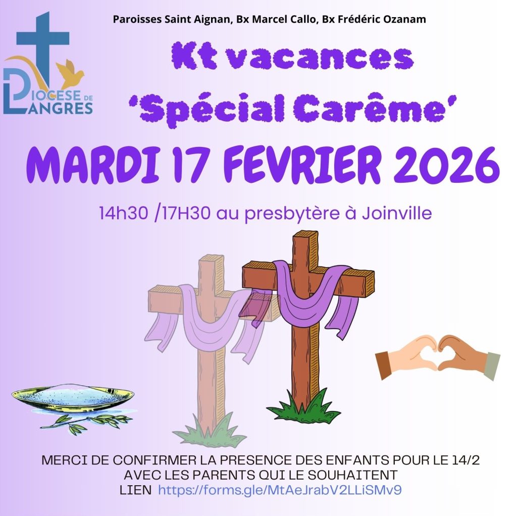KT Vacances « spécial Carême » : mardi 17 février 2026 au presbytère